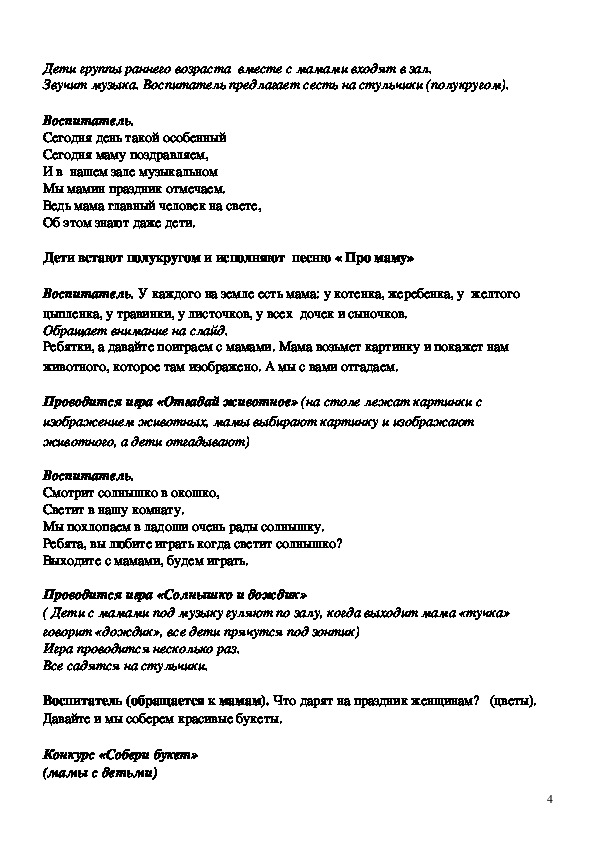 Досуг с детьми раннего возраста и мамами, посвященный Дню Матери.