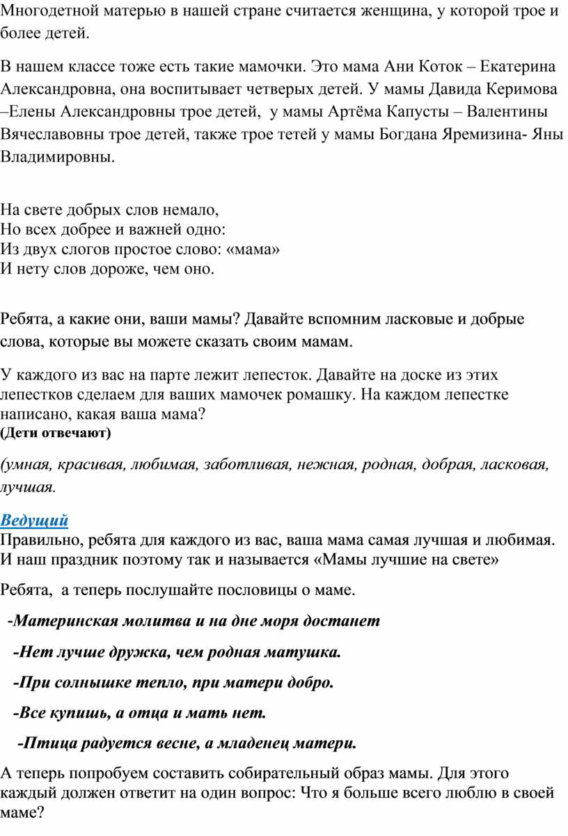 Правильно, ребята для каждого из вас, ваша мама самая лучшая и любимая. И наш праздник поэтому так и называется «Мамы лучшие на свете»
