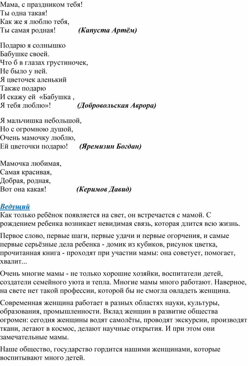 наши мамы примите поздравления от ваших детей