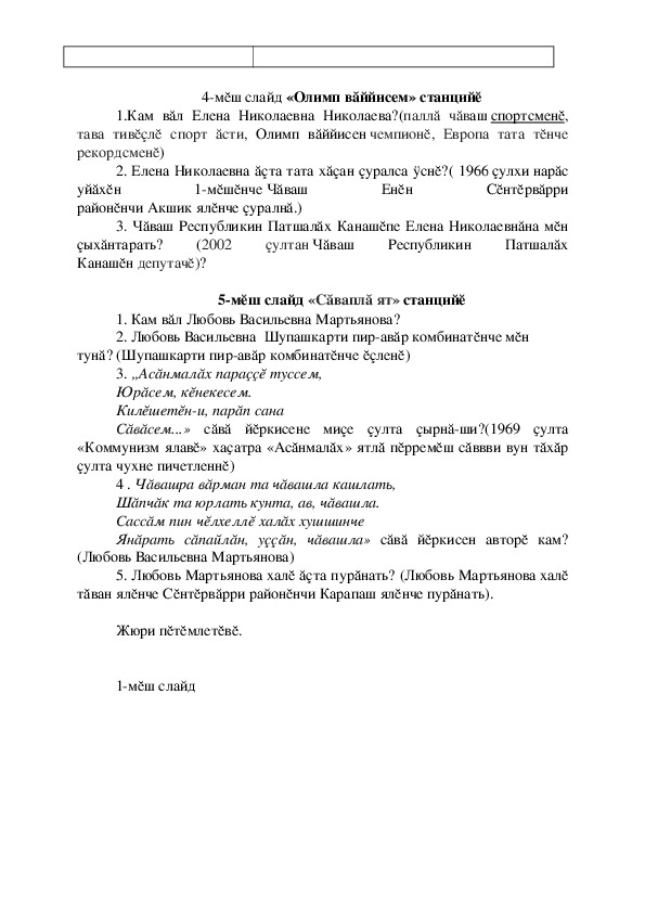 Кам вăл пулнă?4мĕш слайд «Олимп вăййисем» станцийĕ