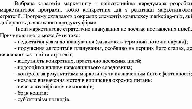 Іноді маркетингове стратегічне планування не досягає поставлених цілей. Причиною цього може бути таке: