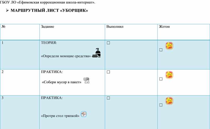 Ø МАРШРУТНЫЙ ЛИСТ «УБОРЩИК»