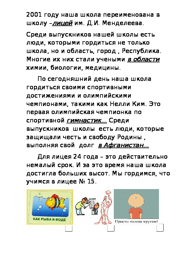 учимся в лицее № 15.Я считаю, что за работу на уроке я заслуживаю оценки ...................................