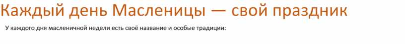 У каждого дня масленичной недели есть своё название и особые традиции: