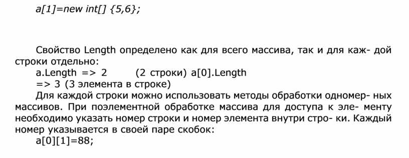 Свойство Length определено как для всего массива, так и для каж- дой строки отдельно: