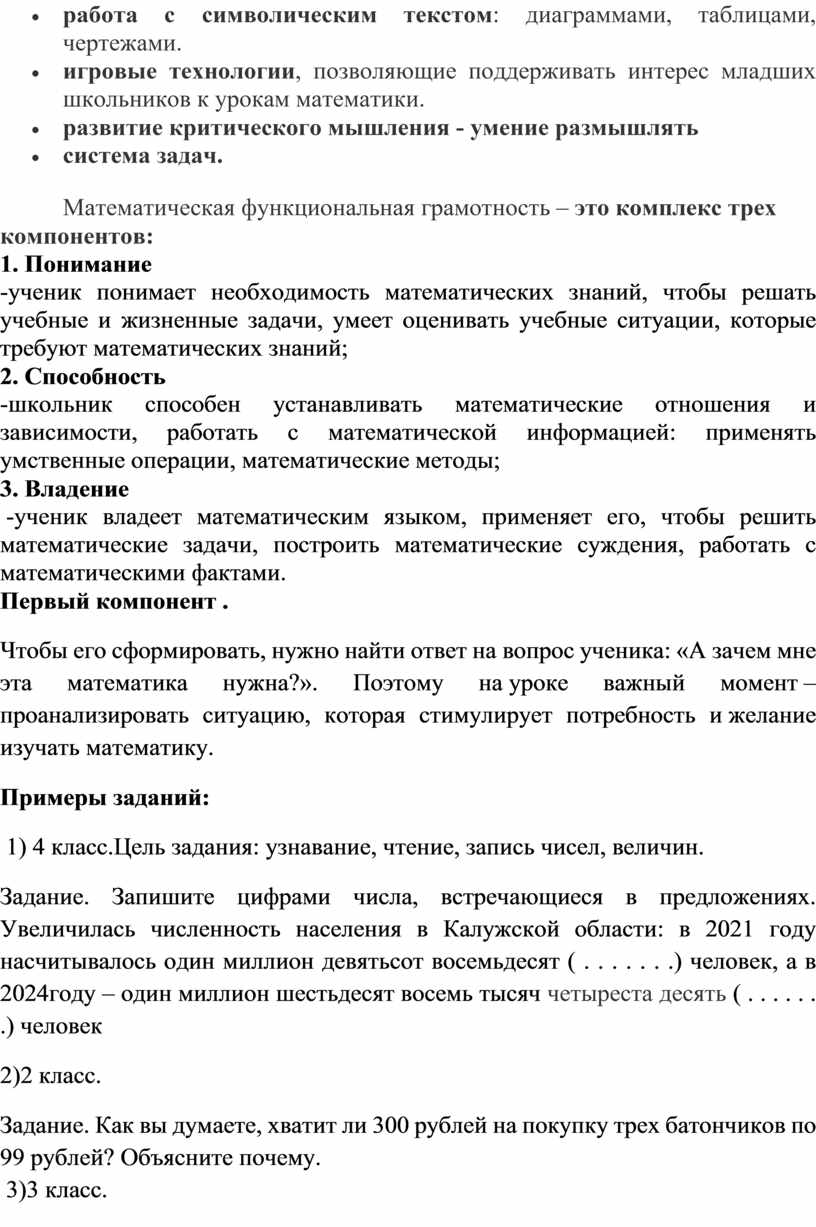 Математическая функциональная грамотность – это комплекс трех