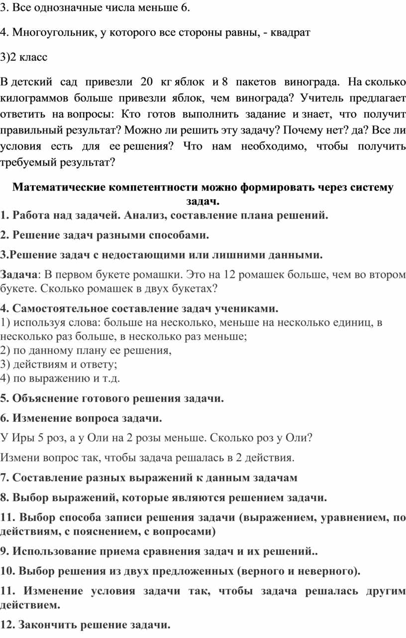 Математические компетентности можно формировать через систему задач.