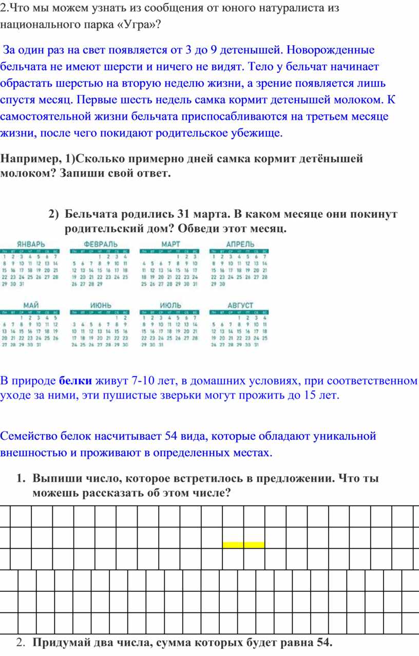 2) Бельчата родились 31 марта. В каком месяце они покинут родительский дом? Обведи этот месяц.