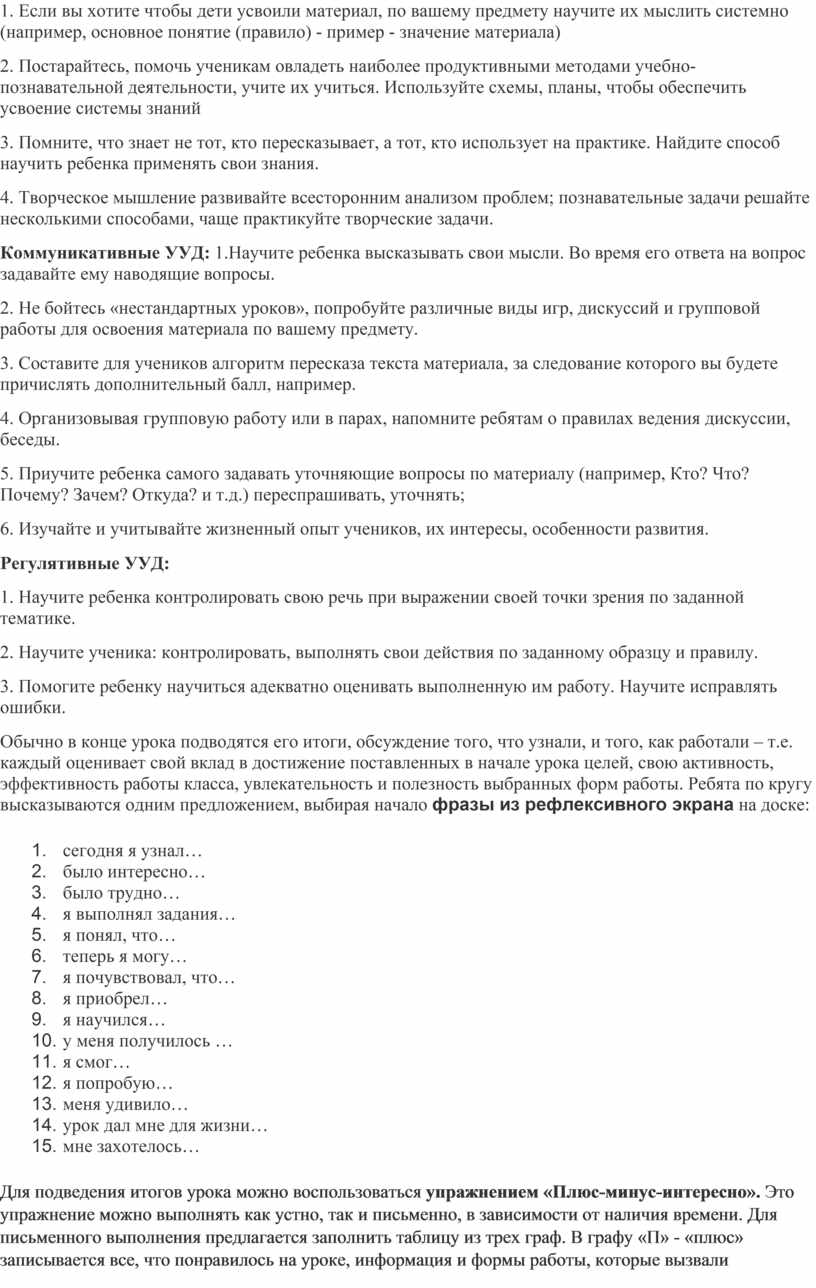 2. Постарайтесь, помочь ученикам овладеть наиболее продуктивными методами учебно-познавательной деятельности, учите иx учиться. Используйте схемы, планы, чтобы обеспечить усвоение системы знаний