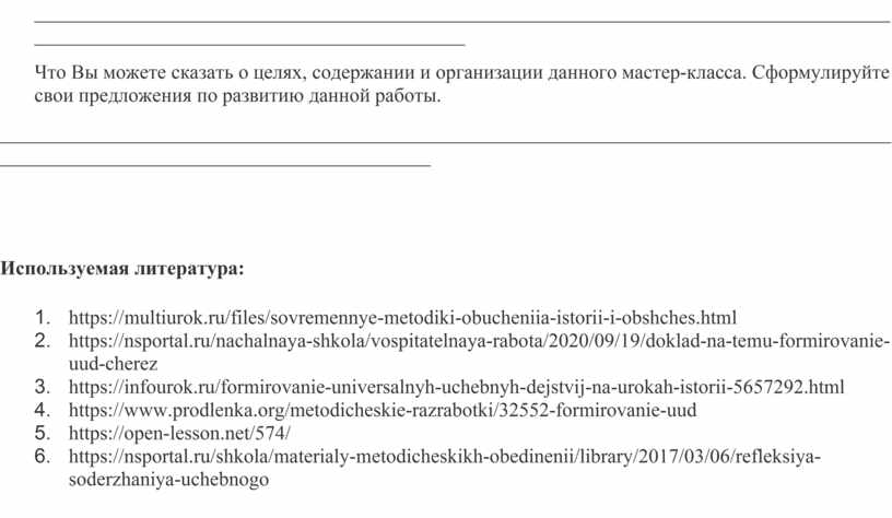 Что Вы можете сказать о целях, содержании и организации данного мастер-класса. Сформулируйте свои предложения по развитию данной работы.