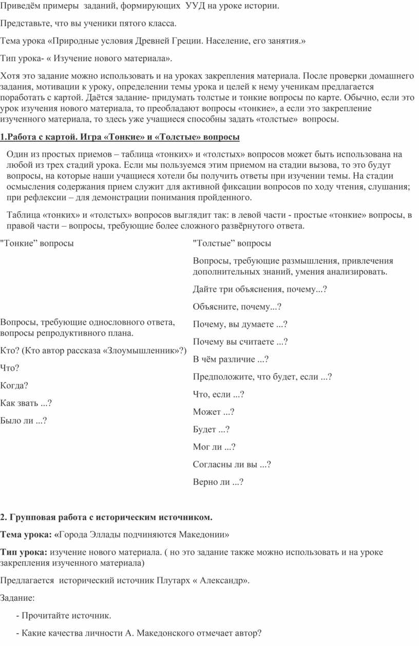 Приведём примеры заданий, формирующих УУД на уроке истории.