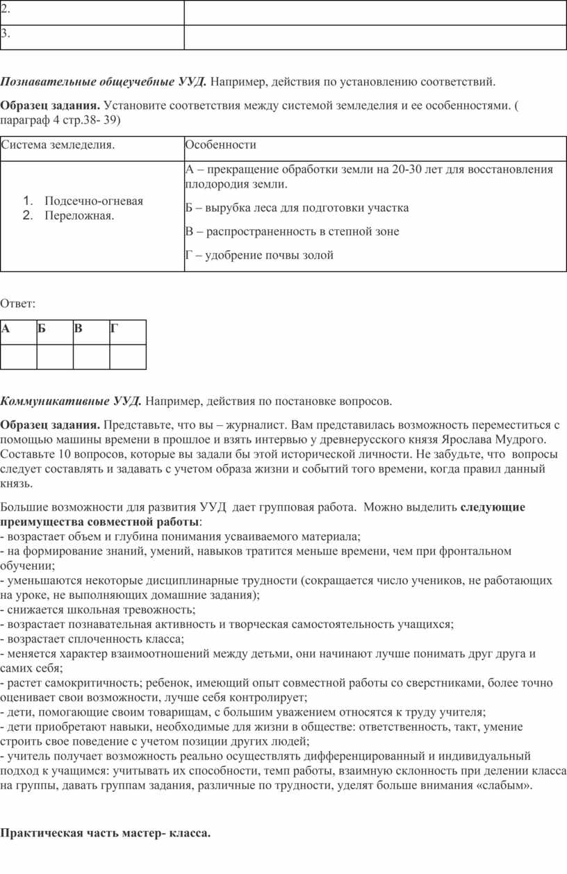 Мастер – класс «Формирование универсальных учебных действий на уроках истории»