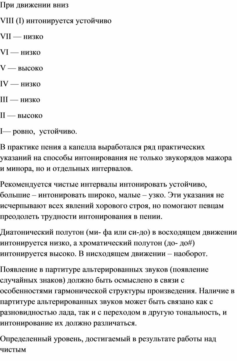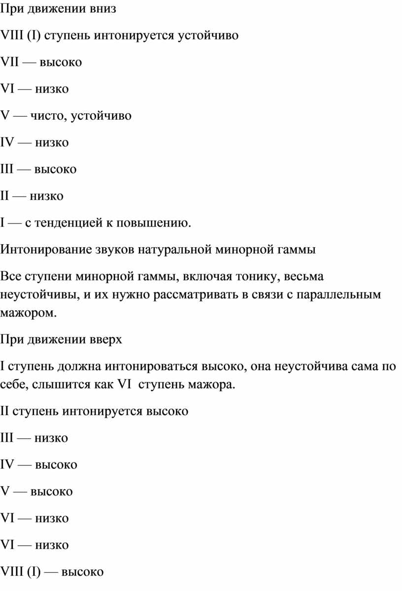 Диатонический полутон (ми- фа или си-до) в восходящем движении интонируется низко, а хроматический полутон (до- до#) интонируется высоко. В нисходящем движении – наоборот.