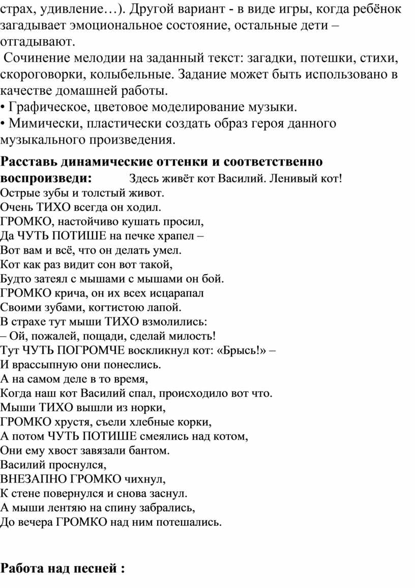 Цели: Научить пользоваться динамическими оттенками в пении и разговорной речи.