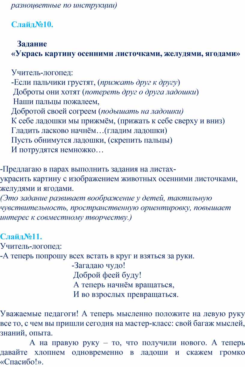 Уважаемые педагоги! А теперь мысленно положите на левую руку все то, с чем вы пришли сегодня на мастер-класс: свой багаж мыслей, знаний, опыта.