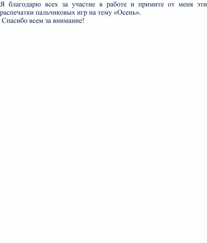 Я благодарю всех за участие в работе и примите от меня эти распечатки пальчиковых игр на тему «Осень».