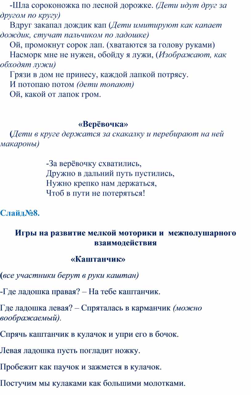 Дидактические игры для развития мелкой моторики и межполушарного взаимодействия, платочки, камушки Марбле, карандаши шестигранные, шишки, каштаны, фасоль, зубные щетки, прищепки, скакалка с макаронами, бусины, пуговицы, сосновые веточки и т.д.