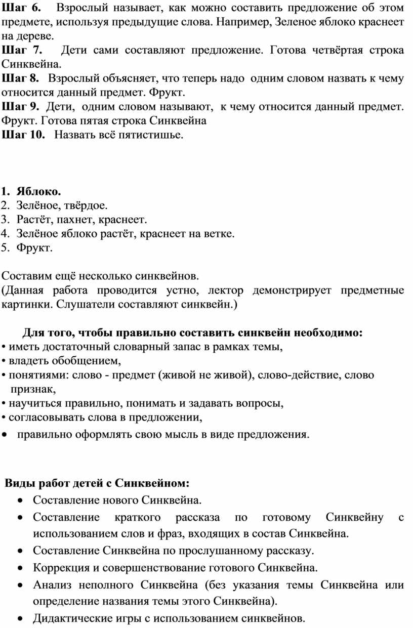 Шаг 1. Берём картинку предмета, например, яблоко и спрашиваем: «Что это?» Яблоко. Готова первая строка Синквейна.