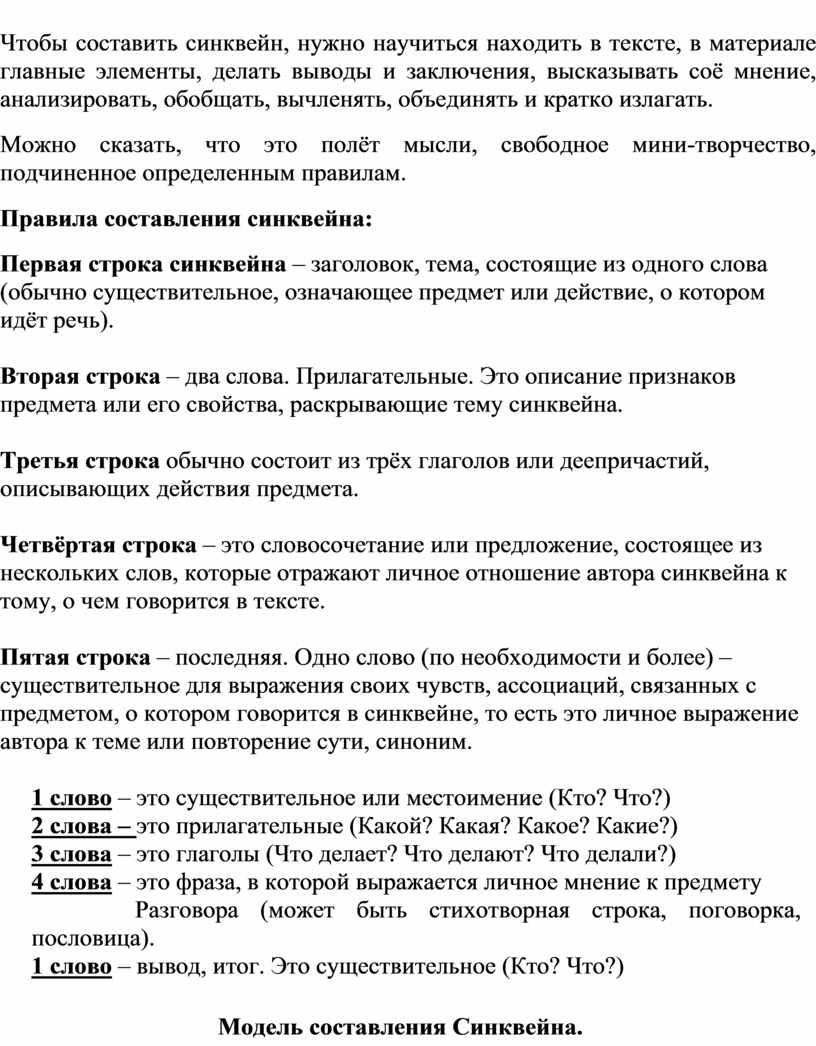 Для того, чтобы правильно составить синквейн необходимо: