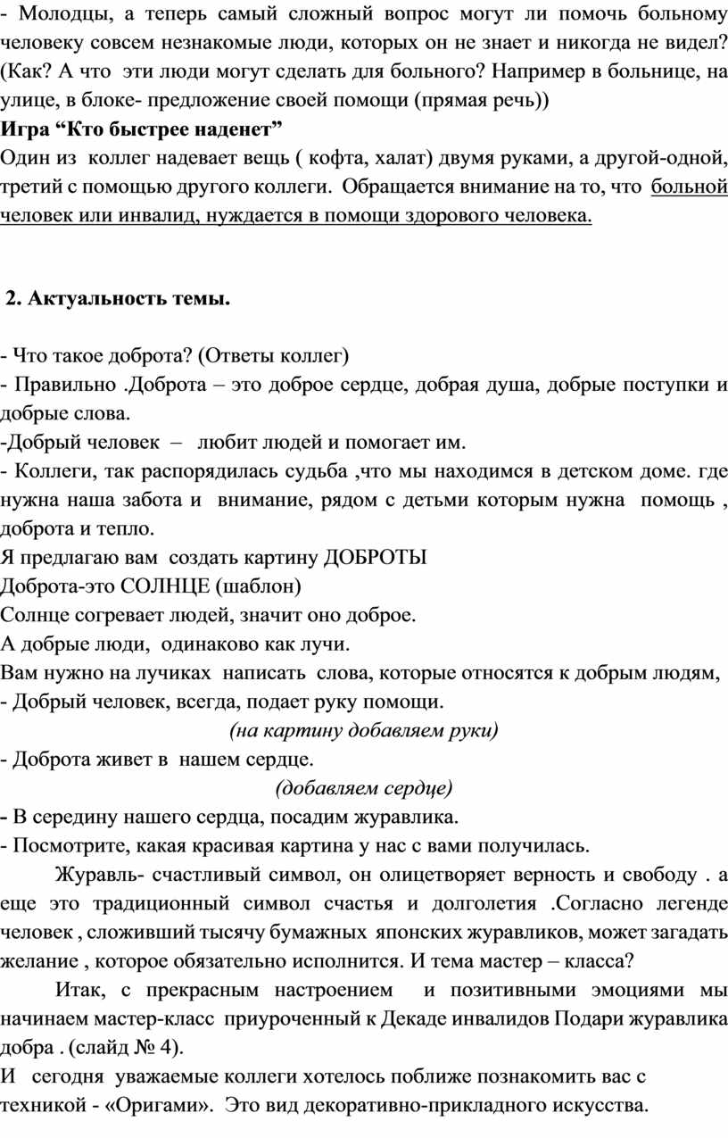 2. Основная часть. Подари журавлика добра ( приуроченный к Декаде инвалидов)