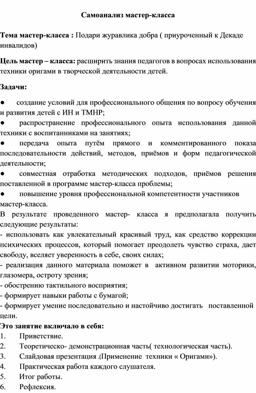 Самоанализ мастер-класса