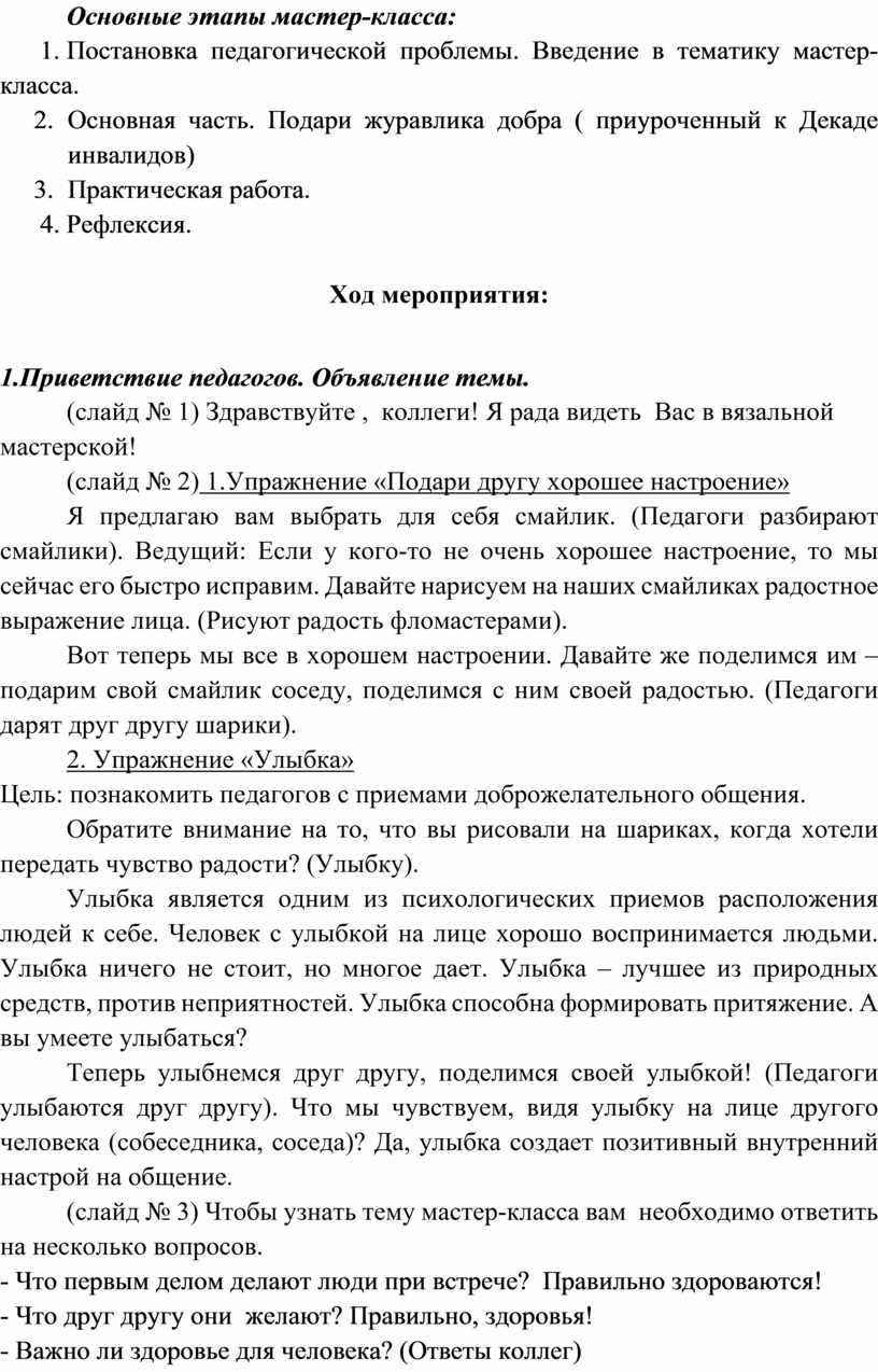 Основные этапы мастер-класса: