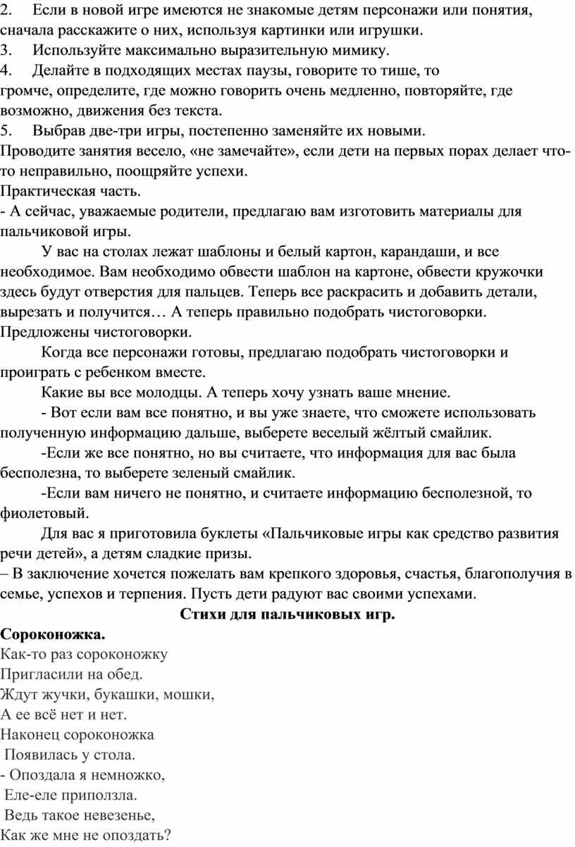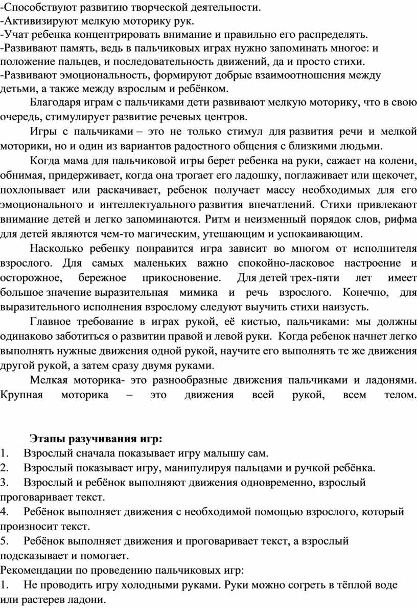 Рекомендации по проведению пальчиковых игр: