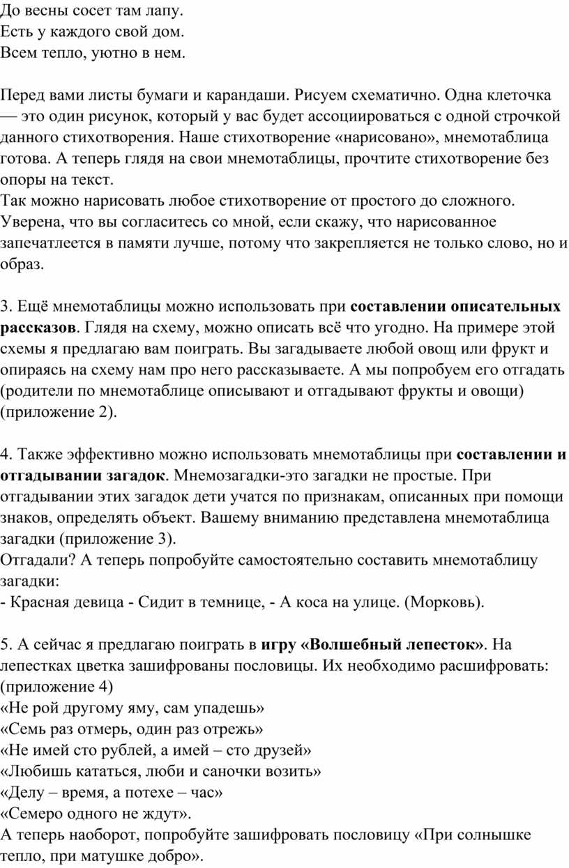 работы с мнемотаблицами для развития речи детей-дошкольников.