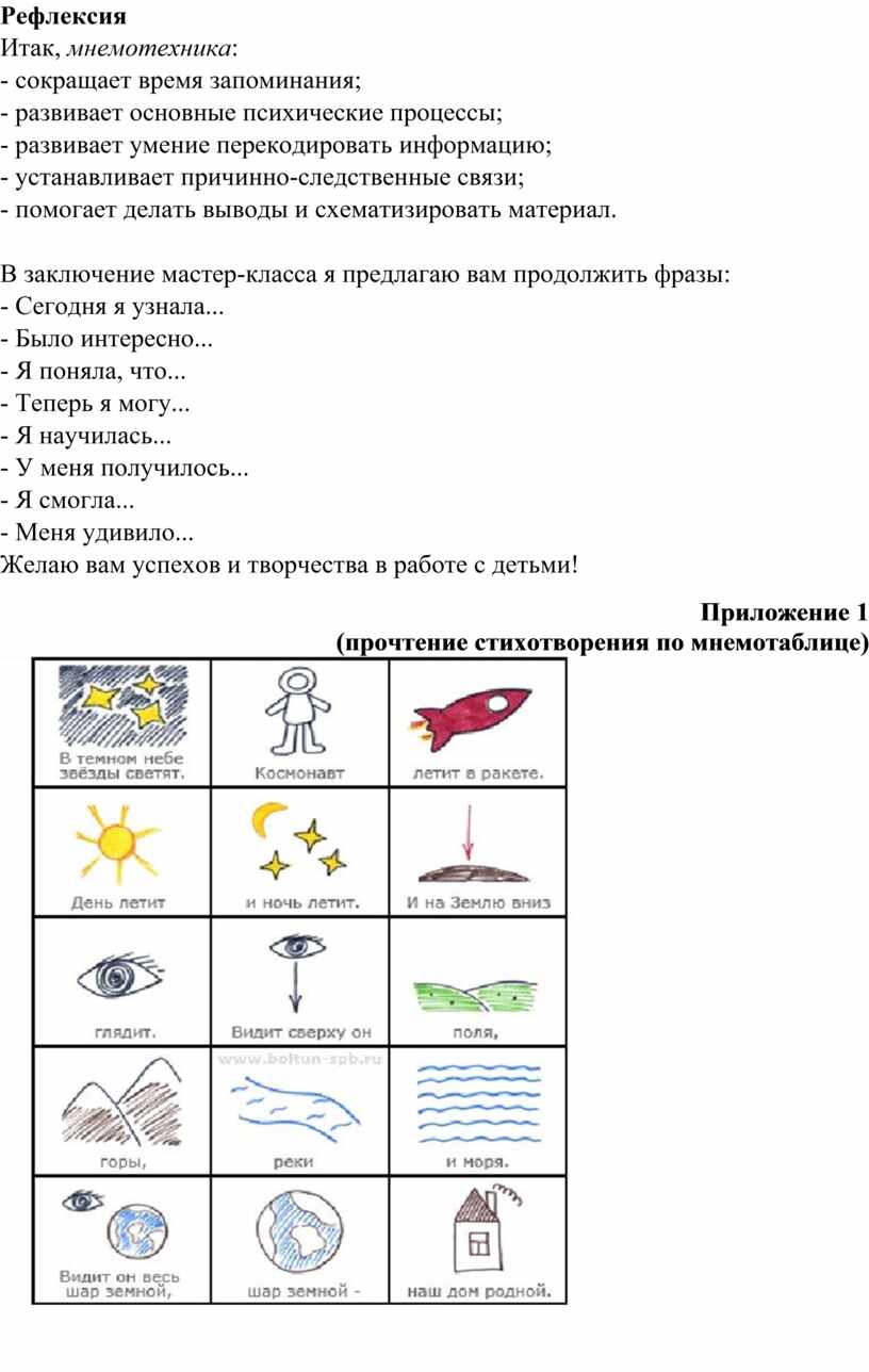 способствует мнемотехника. Как любая работа, мнемотехника строится от простого