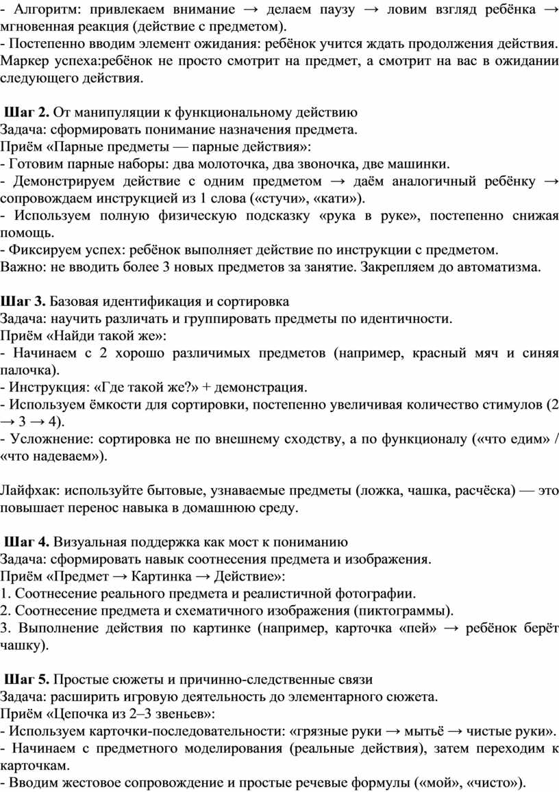 - Алгоритм: привлекаем внимание → делаем паузу → ловим взгляд ребёнка → мгновенная реакция (действие с предметом).