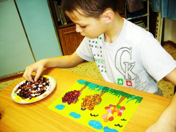 Как я организую методику крупотерапии? Как выше было сказано, в процессе внеурочной деятельности, использую разные виды круп, а также ёмкости для пересыпания (чашки, миски, ложки), инструменты для создания поделок (клей, картон, бумага). Ребята с удовольствием создают картины из крупы, поделки, прячут мелкие предметы в крупе для поиска, сортировки и описания внешнего вида с закрытыми глазами, сугубо опираясь на мелкую моторику пальцев. Крупотерапия – это не только полезное, но и веселое занятие, которое приносит радость и пользу каждому ребёнку вне зависимости от диагноза.
