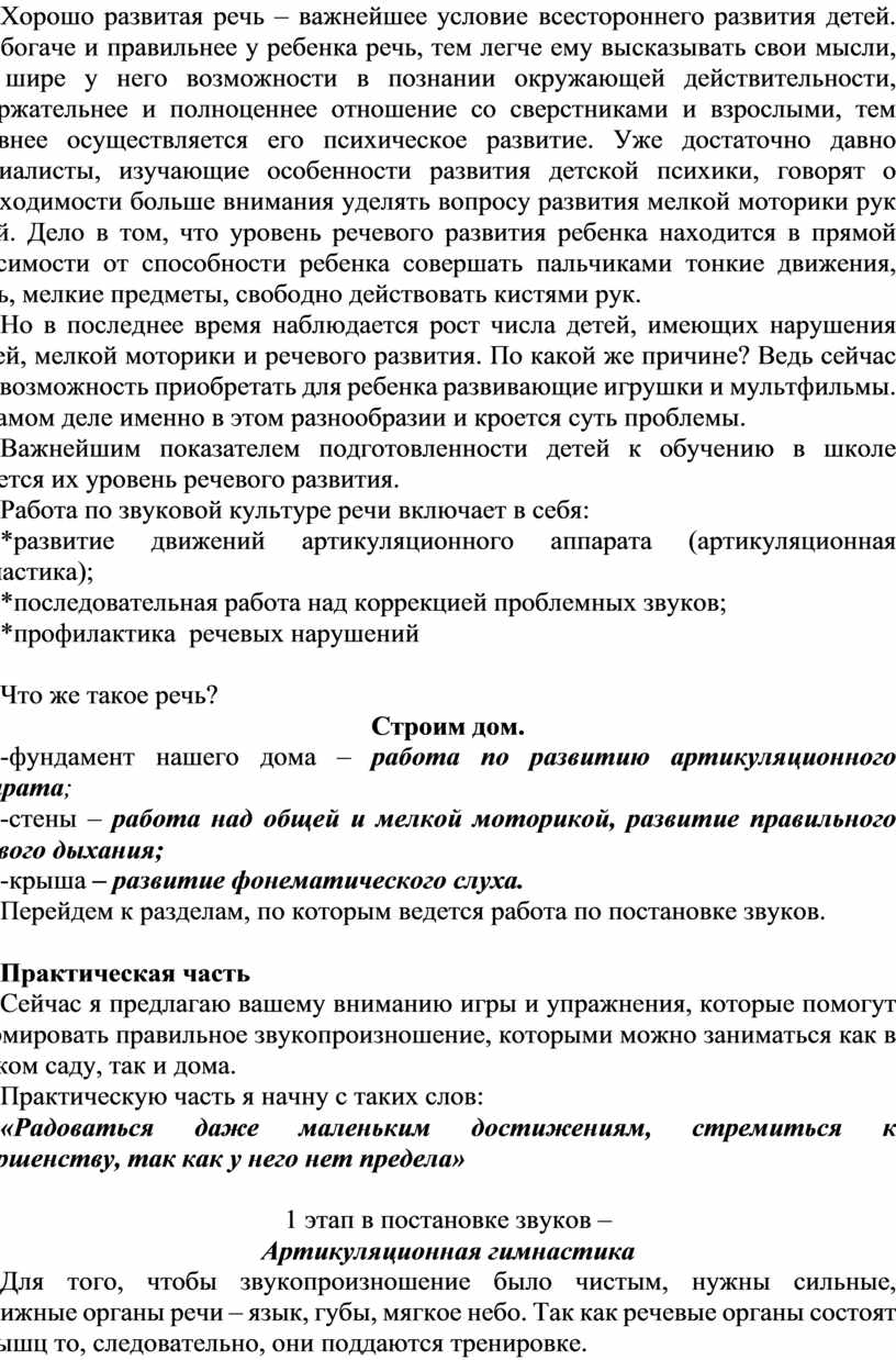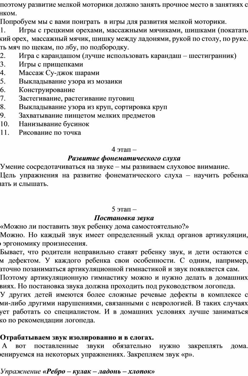 Перейдем к разделам, по которым ведется работа по постановке звуков.