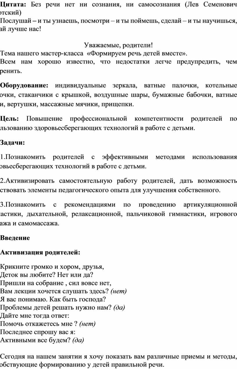 Тема нашего мастер-класса «Формируем речь детей вместе».
