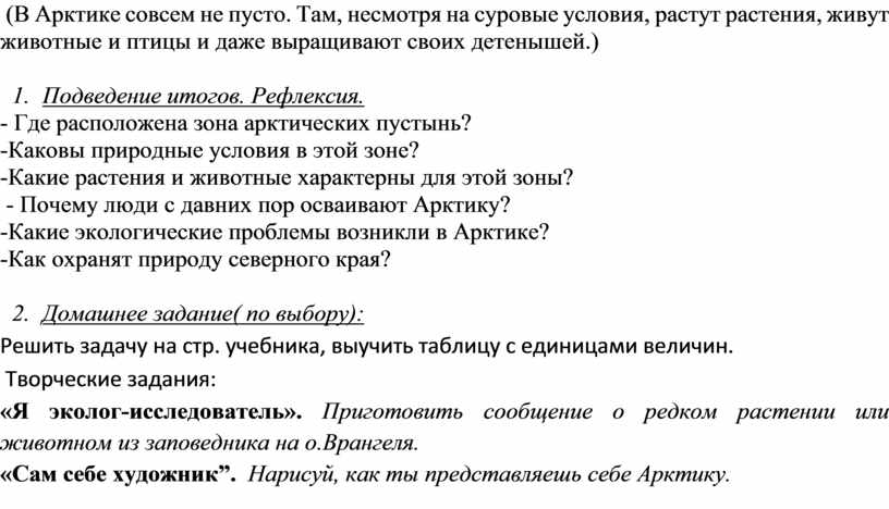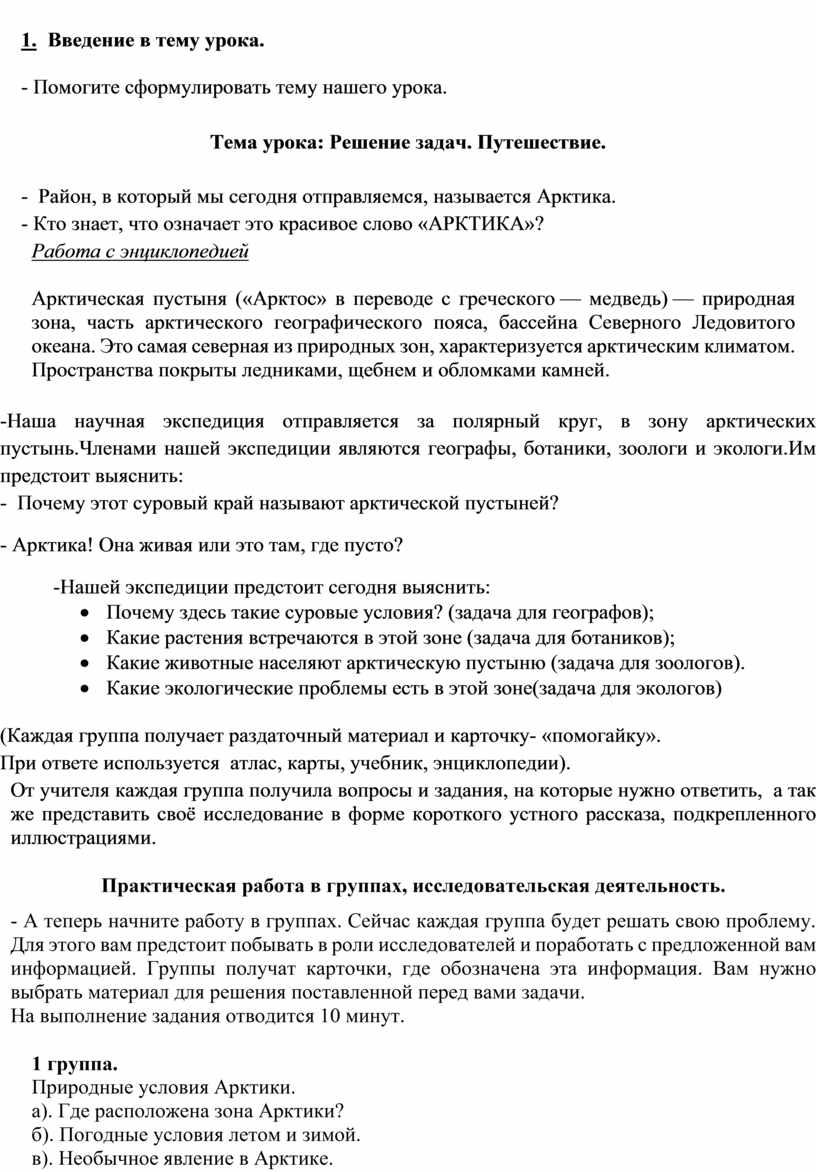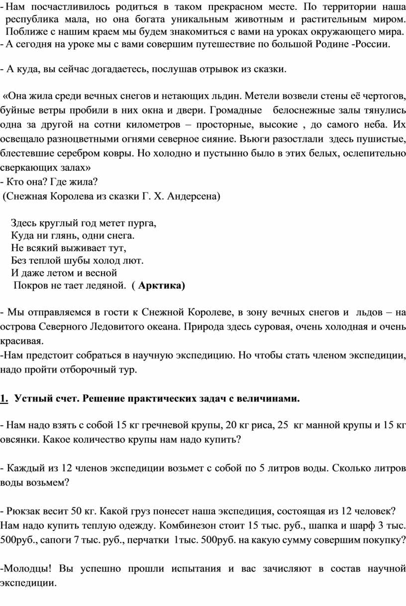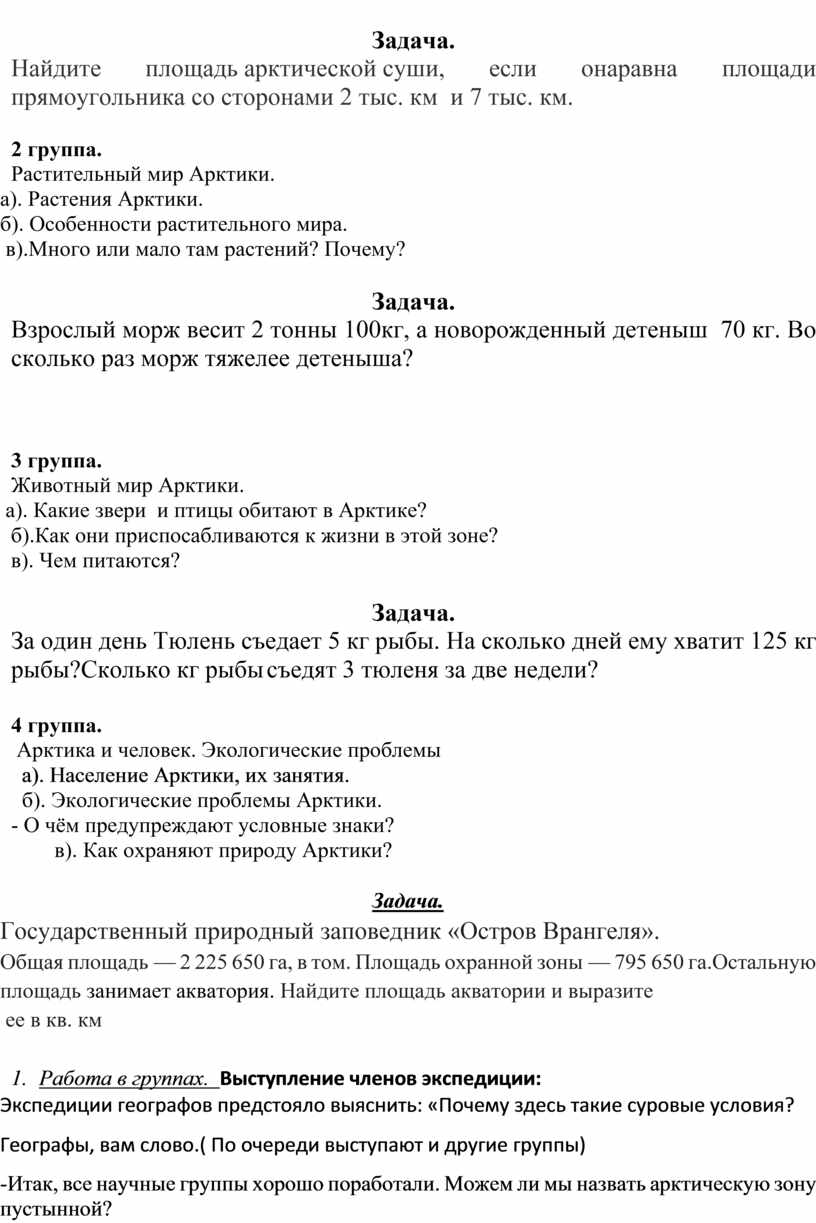 Тема урока: Решение задач по теме «Величины». Природные зоны. Арктика.