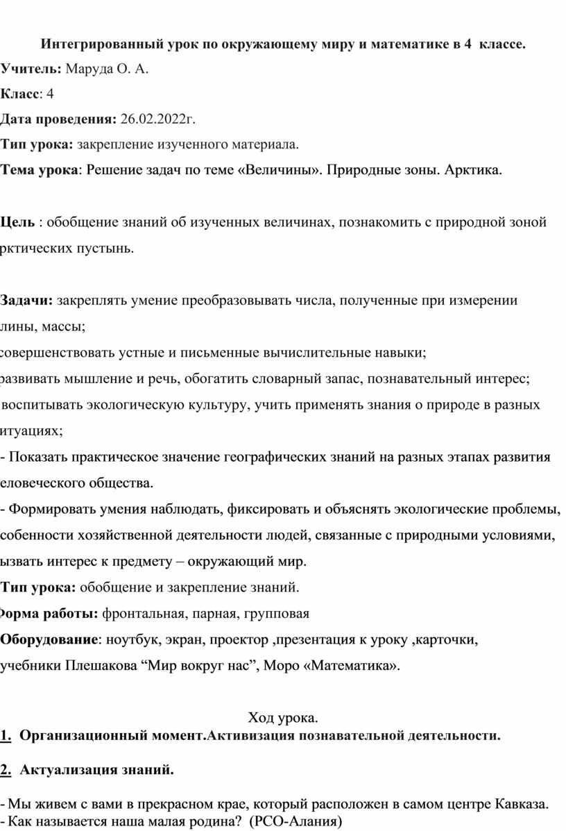 Интегрированный урок по окружающему миру и математике в 4 классе.