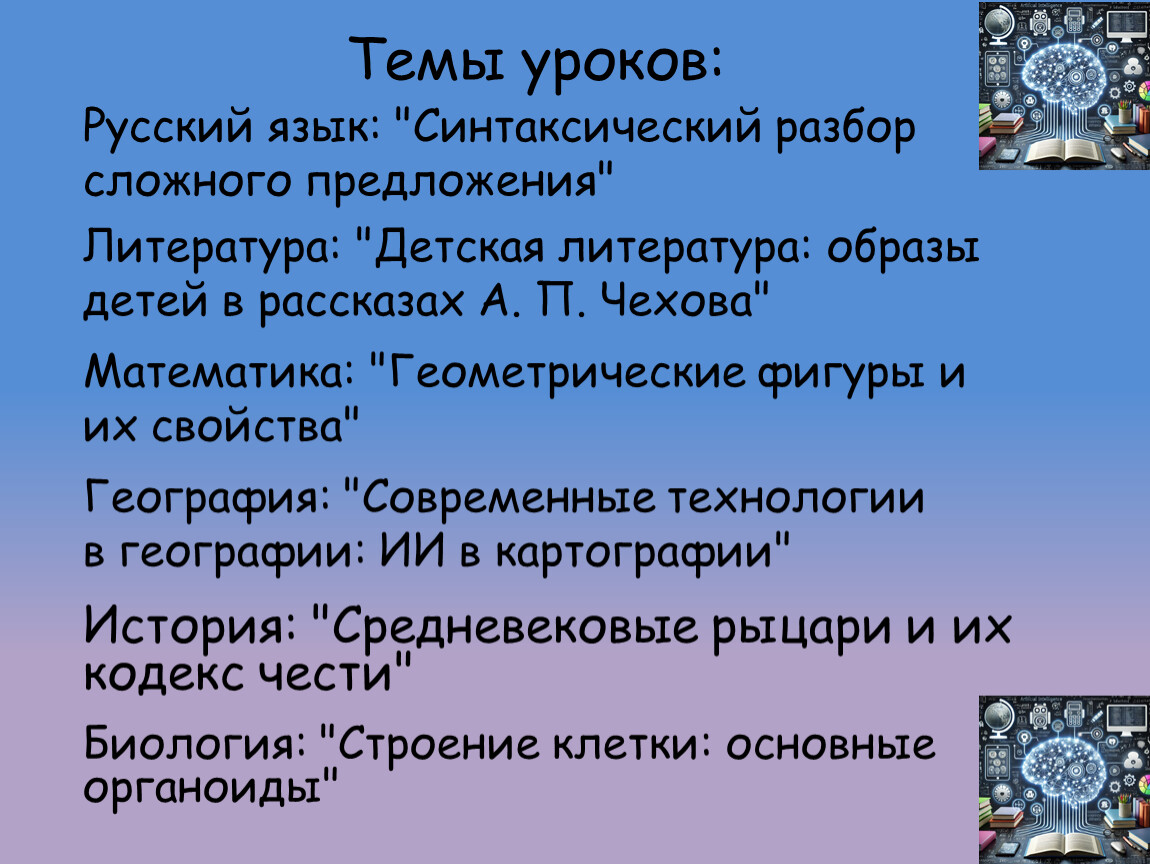 Темы уроков: