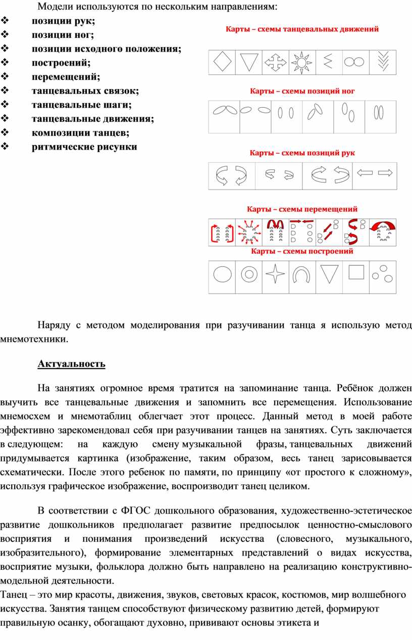 Наряду с методом моделирования при разучивании танца я использую метод мнемотехники.