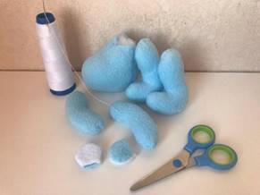 Подведем итоги: у нас готовы детали туловища, ноги, руки, ушки.