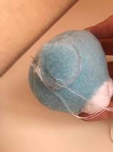 Прокалываем вторую ручку, и таким же способом (прокалываем туловище насквозь) возвращаемся обратно к первой ручке. Повторяем 3-4 раза чтобы ручки крепко держались, закрепляем узелком.