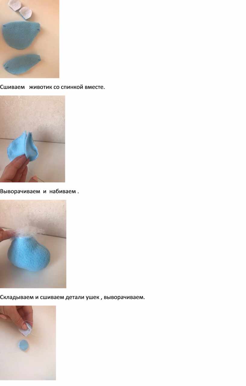 Складываем и сшиваем детали ушек , выворачиваем.