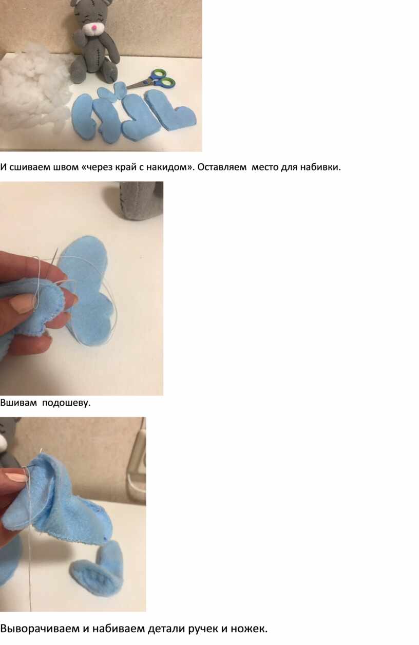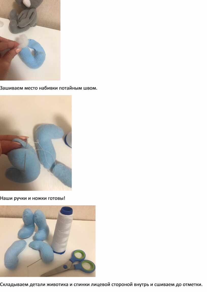 Выворачиваем и набиваем детали ручек и ножек.