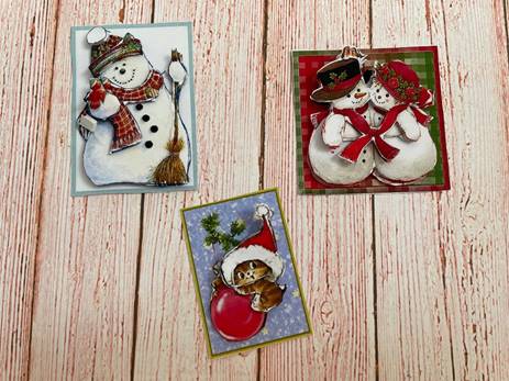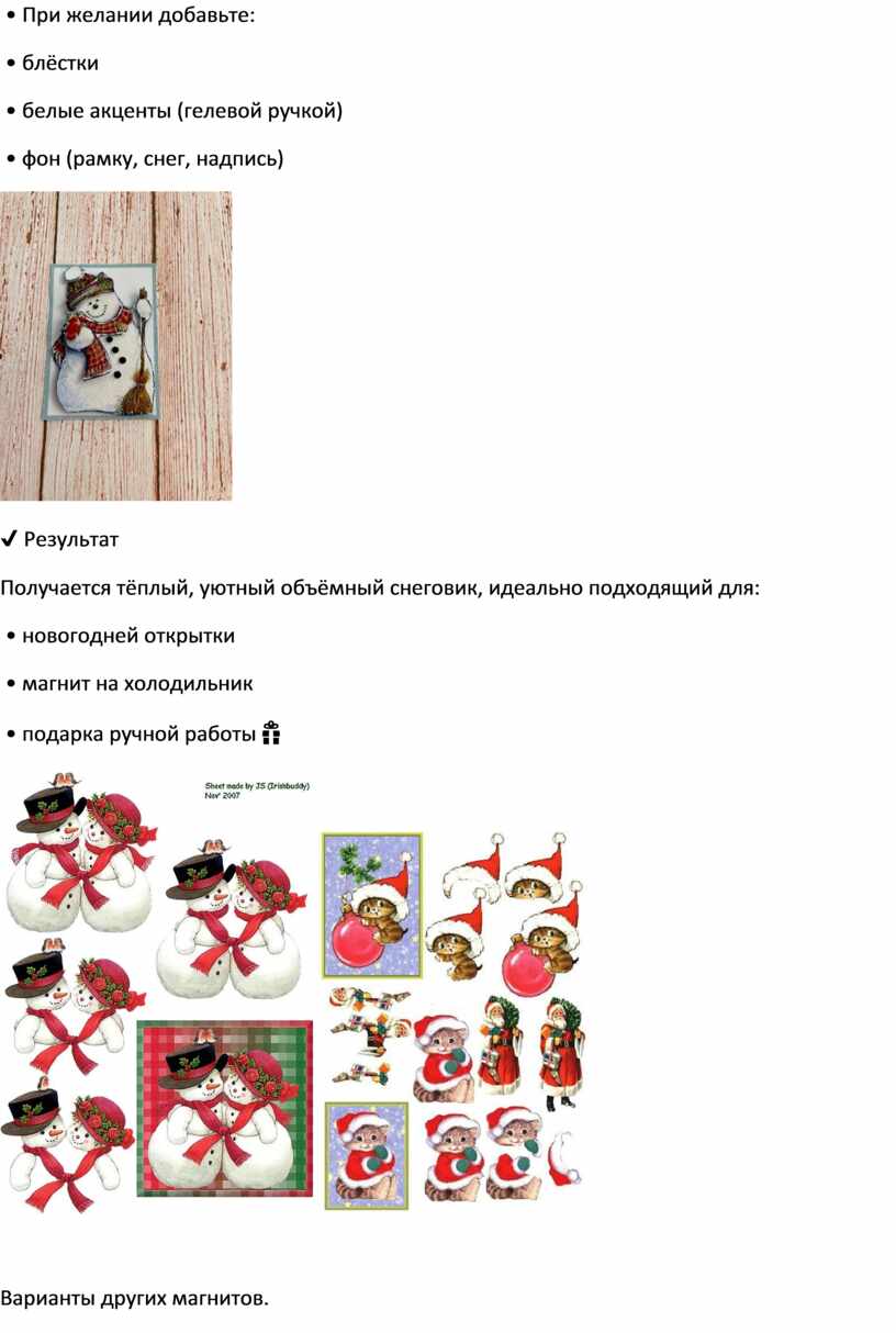 Распечатайте мотив с несколькими одинаковыми снеговиками (обычно 3–4 штуки).