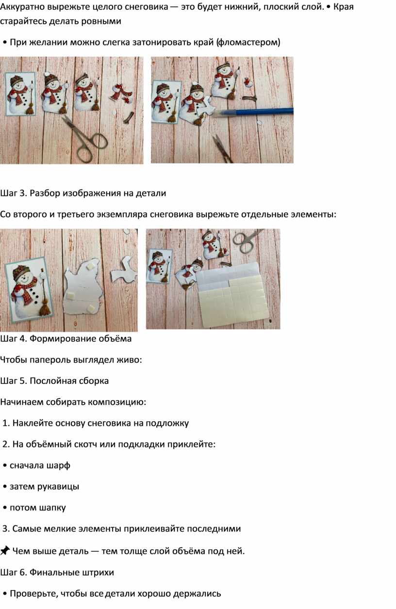 Аккуратно вырежьте целого снеговика — это будет нижний, плоский слой. • Края старайтесь делать ровными