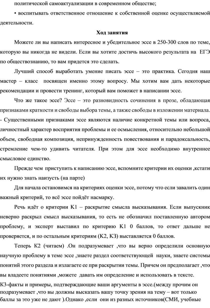 Прежде чем приступить к написанию эссе, вспомните критерии их оценки ,кстати их нужно знать наизусть (на парте)