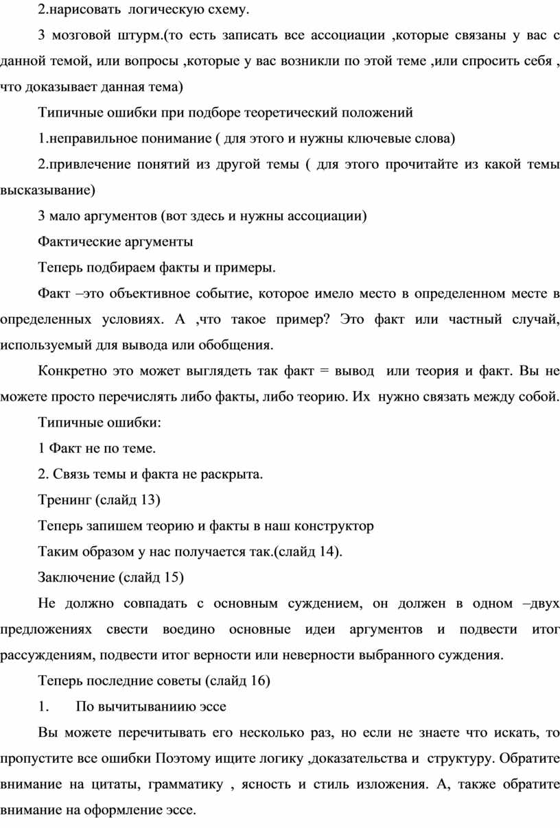 Цель урока: с целью обобщения умений и навыков обучающихся разработать научить использовать алгоритм написания эссе.