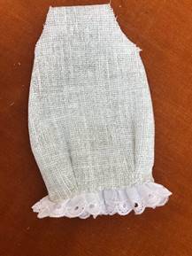 Приступаем к пошиву платья. Платье может быть любого фасона.У нас такое.Зашиваем вытачки,сшиваем боковые стороны. Пришиваем кружево.