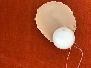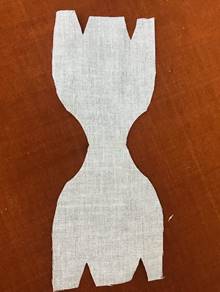 Приступаем к изготовлению головы. Для этого берем деталь головы и прошиваем ее швом «вперед иголкой» В шарик вкалываем булавку с бусиной-это будет наш носик. Обтягиваем шарик тканью .Закрепляем.