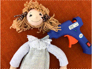 Приклеиваем голову к туловищу клеем пистолетом.