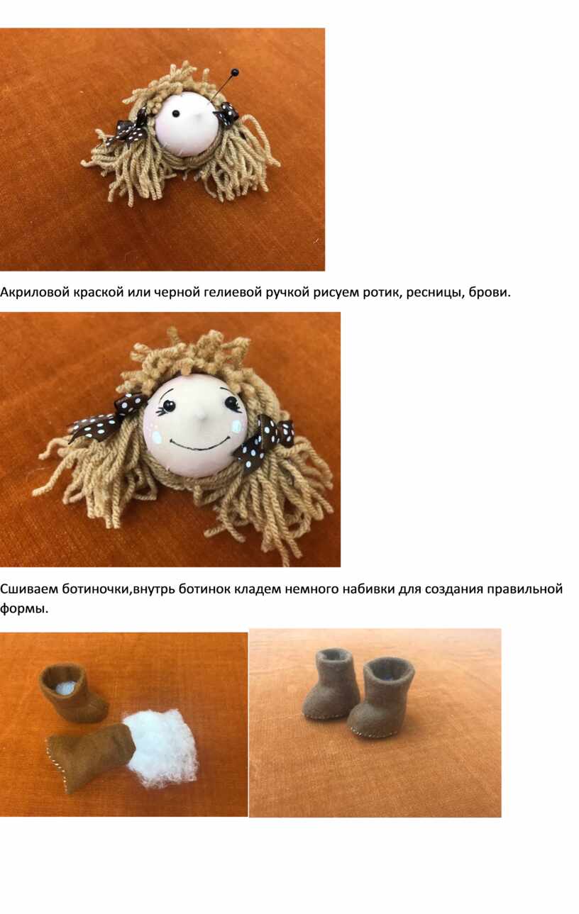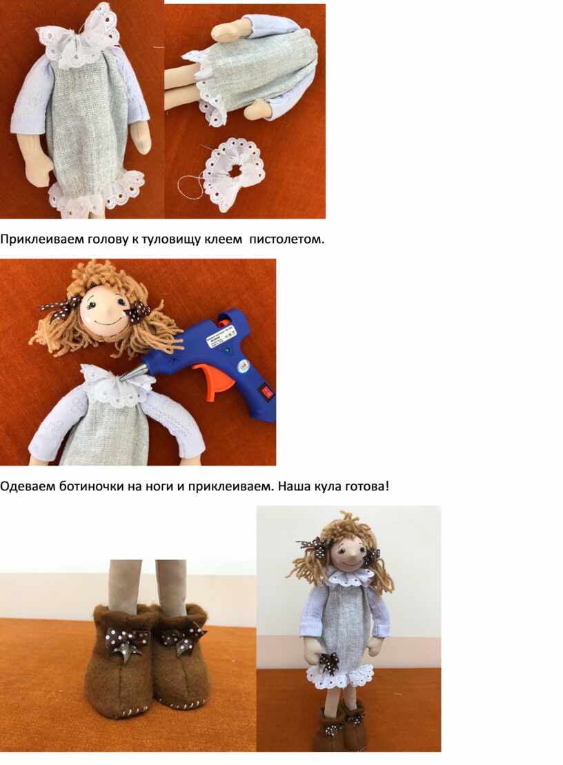 Одеваем ботиночки на ноги и приклеиваем. Наша кула готова!