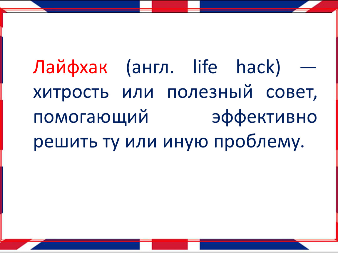 Лайфхак (англ. life hack) — хитрость или полезный совет, помогающий эффективно решить ту или иную проблему.